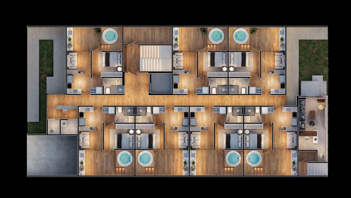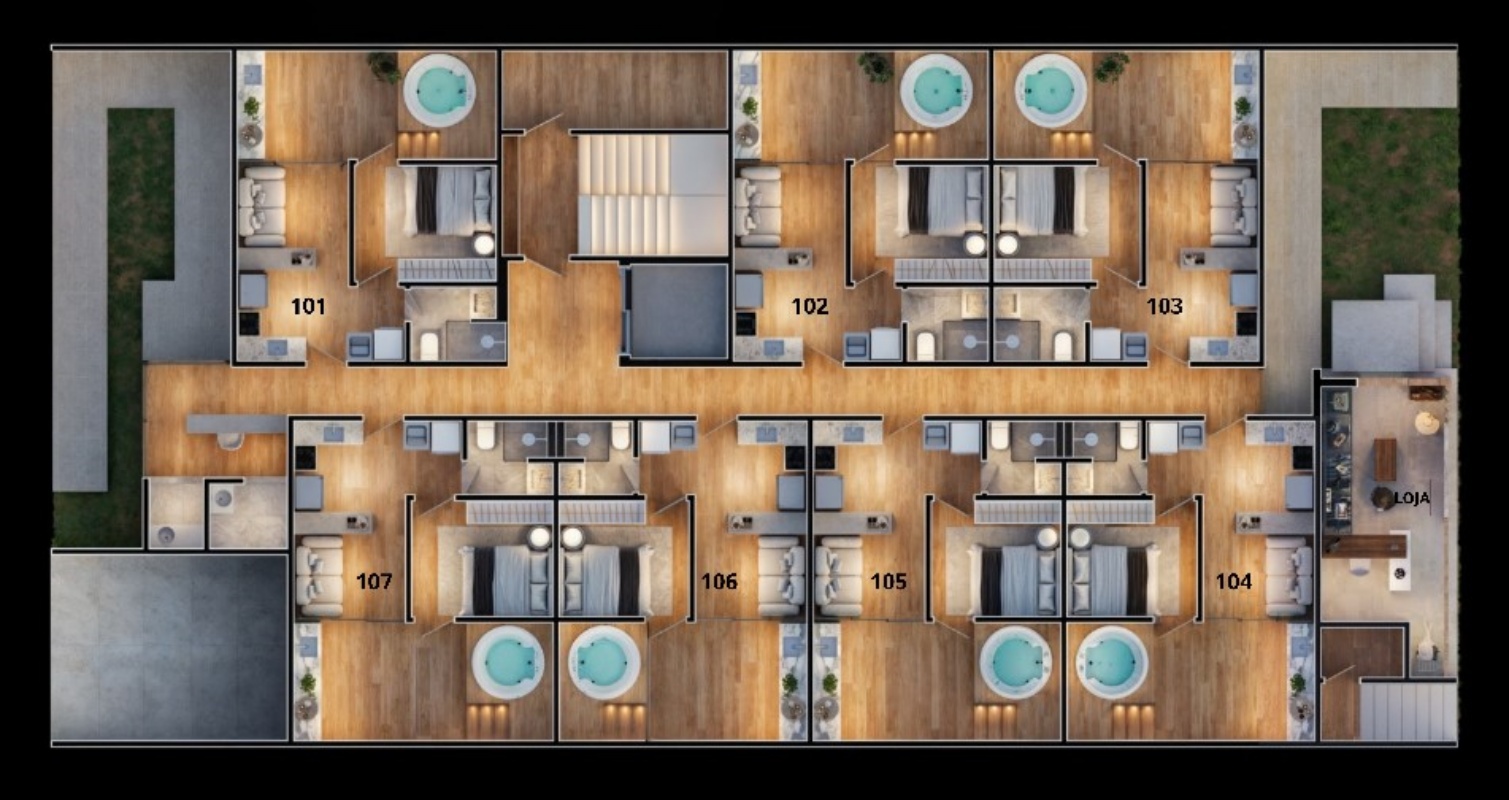 Com 28 unidades distribuídas entre o pavimento térreo e os demais andares, e apartamentos com opção de varanda, terraço com espaço para hidromassagem, e plantas inteligentes, o Manati entrega um empreendimento pensado na sua estadia e rentabilidade.